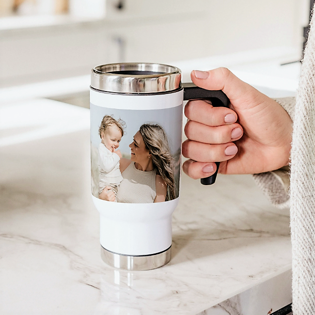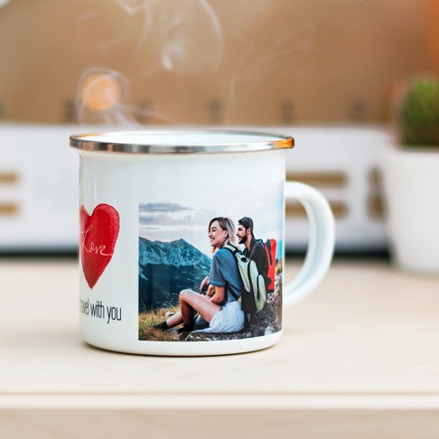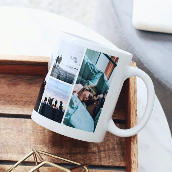 Nahrajte oblíbené fotky do online návrháře, přidejte libovolný text a stiskem tlačítka vytvořte vlastní kolážový hrnek - je to tak snadné!