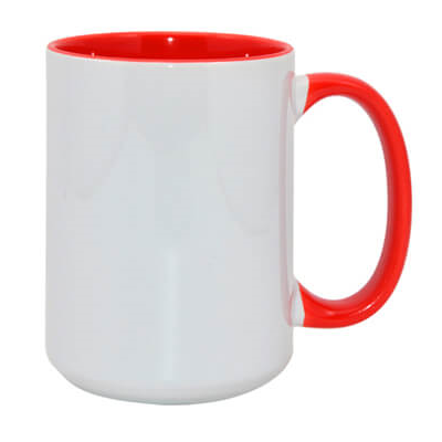 Nahrajte fotky do intuitivního návrháře potisků, přidejte libovolný text a vytvořte si potisk pro hrnek 450 ml s červeným vnitřkem a uchem – je to tak snadné!