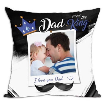 • Polštářek s předtištěným motivem Dad King a rámečkem pro potisk vlastní fotkou.